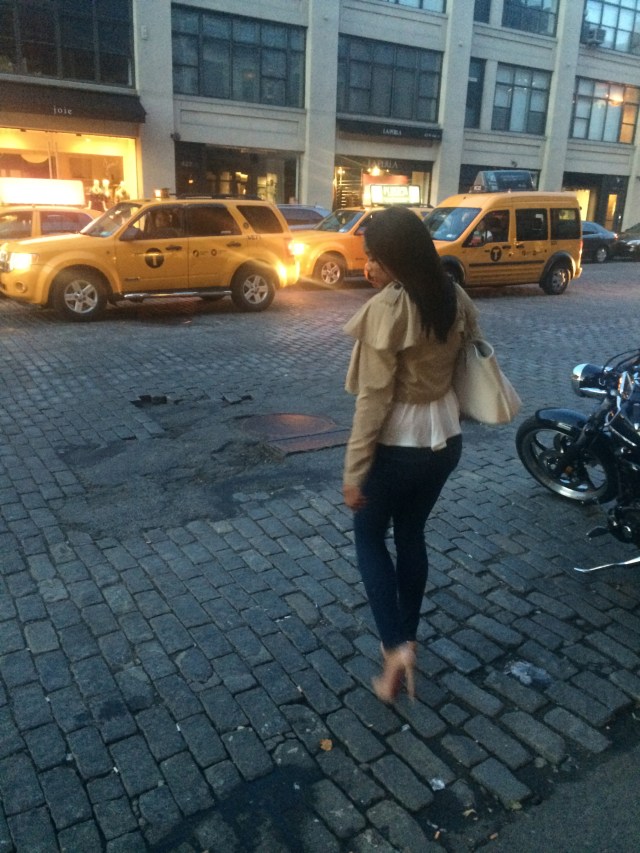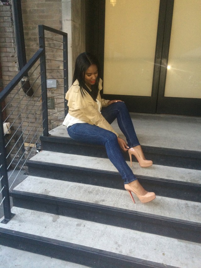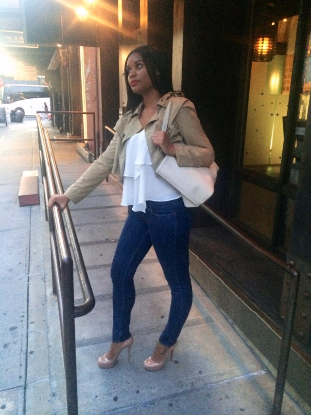 Summer is fading and the autumn season is approaching fast. Rather than dive right into the fall attire I like to ease my way in with a classic look that I can layer. Just in case I may get too hot or too cold. Here is my go to weather transitional look that is so easy to do: Dark blue jeans with a white sleeveless top and a crop jacket. To make it less casual I add a pair of sky high heels paired with my off white tote bag.