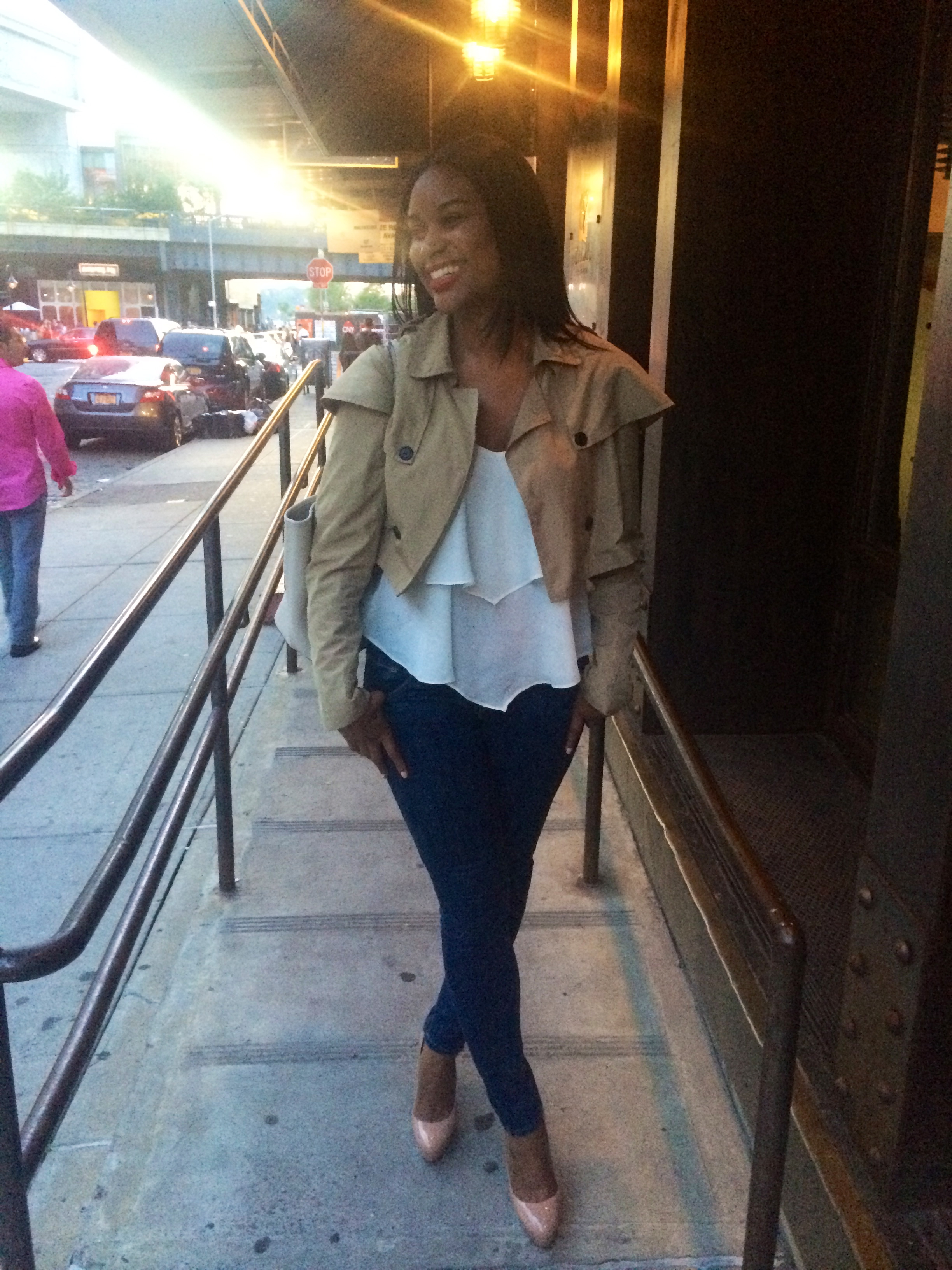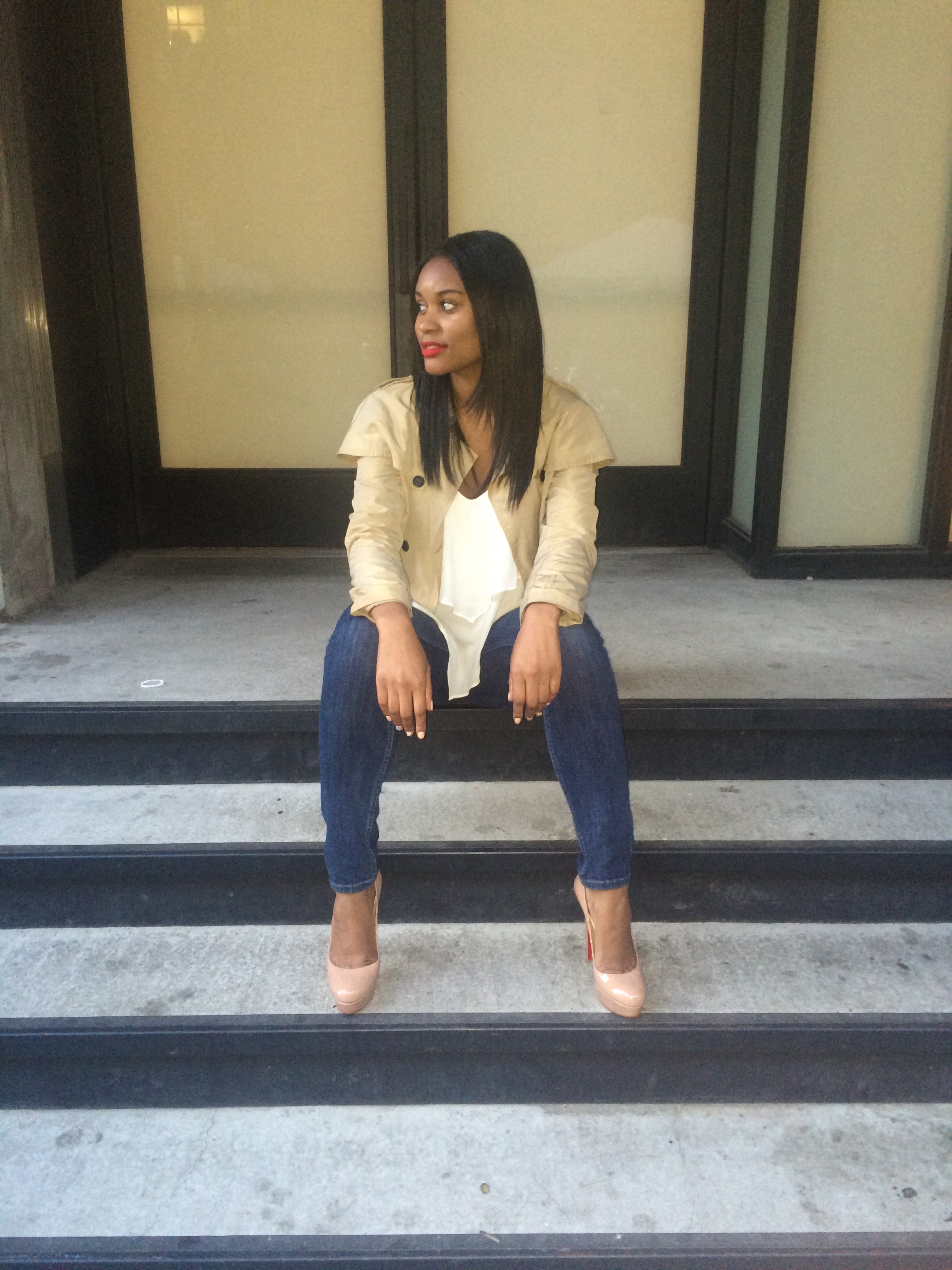 Summer is fading and the autumn season is approaching fast. Rather than dive right into the fall attire I like to ease my way in with a classic look that I can layer. Just in case I may get too hot or too cold. Here is my go to weather transitional look that is so easy to do: Dark blue jeans with a white sleeveless top and a crop jacket. To make it less casual I add a pair of sky high heels paired with my off white tote bag.