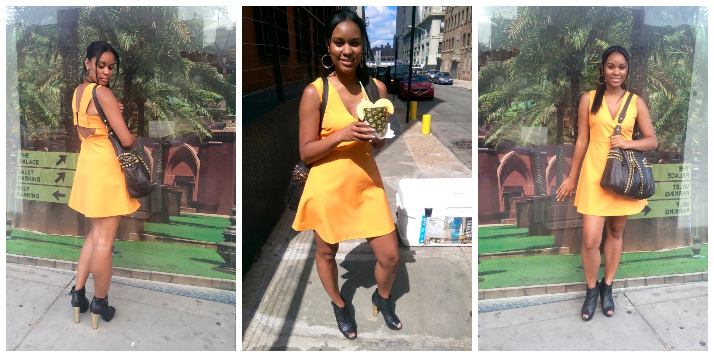 On sunday I went to ESSENCE Street Style Block Party in Brooklyn before attending a few shows at Lincoln Center. I didn’t get to stay as long as I would of have liked, however while I was there I witnessed some of the best street fashion I have seen so far during fashion week. The event had great vendors, musical performances, and also hair and makeup stations. Here is my outfit of the day I put together for the festivities. This Zara dress I actually scored on saturday for just $10 dollars. I loved the color ( which is an orange yellow), the back cutouts, & how it flares out in the front. A total steal that I could not pass up lol. The Betsey Johnson bag is actually the first designer bag I ever purchased. I love how the leather has gotten even softer over the years and the gold studs give it a youthful feel. Lastly, my BCBG peep toe boots I have had for five years & they still look like new. The gold heel compliments the gold studs on my bag. Hope you enjoyed the look.