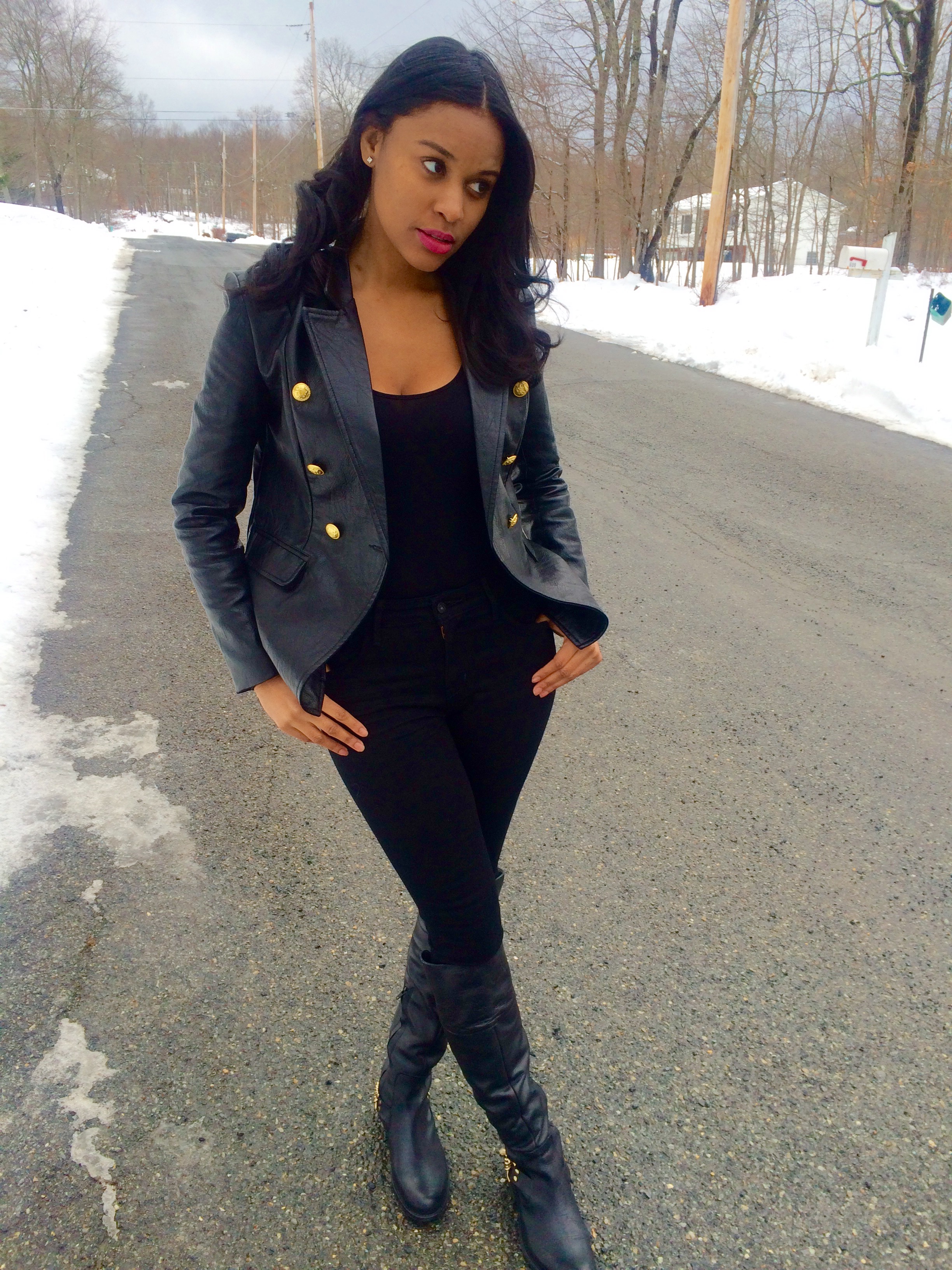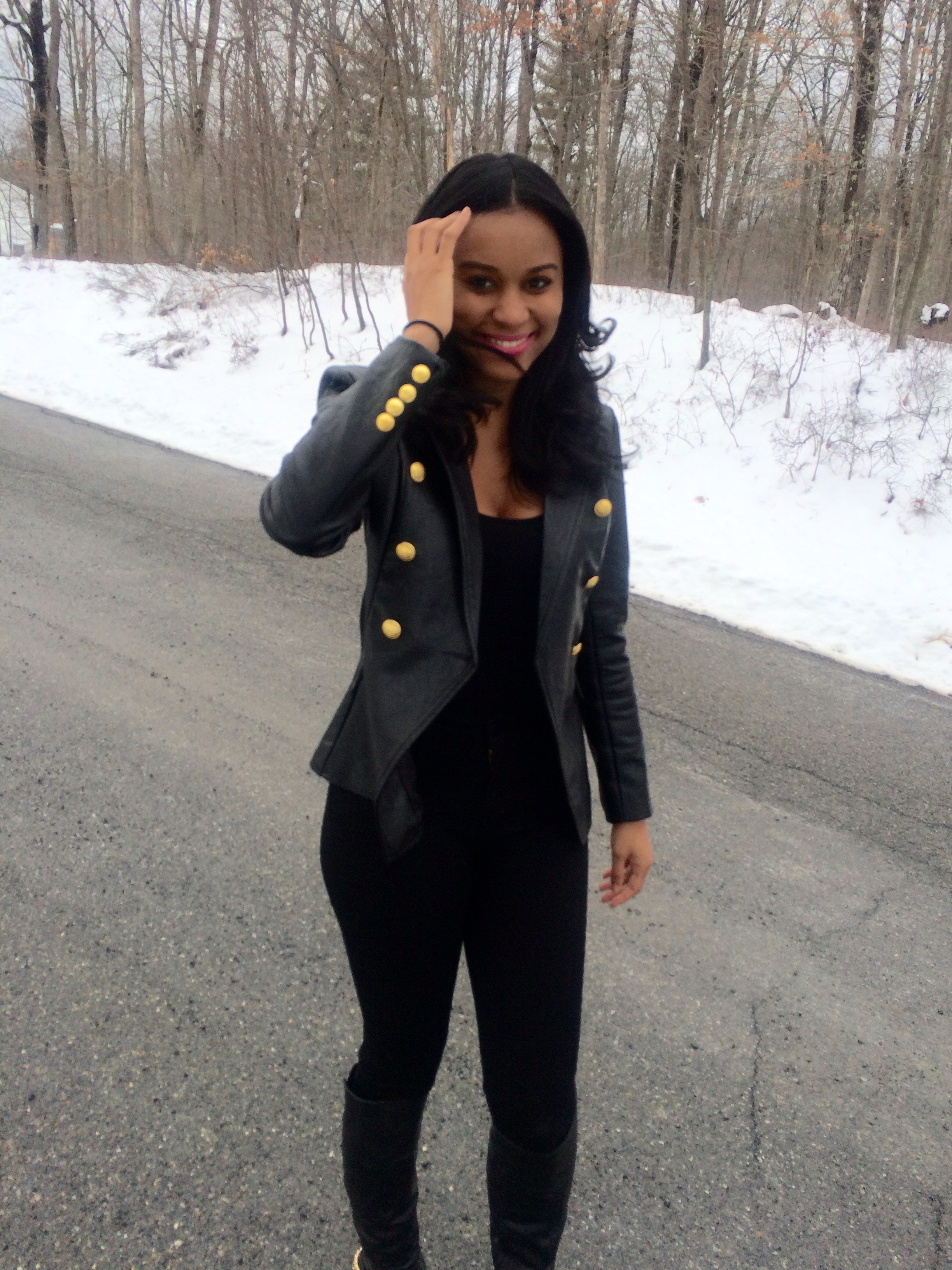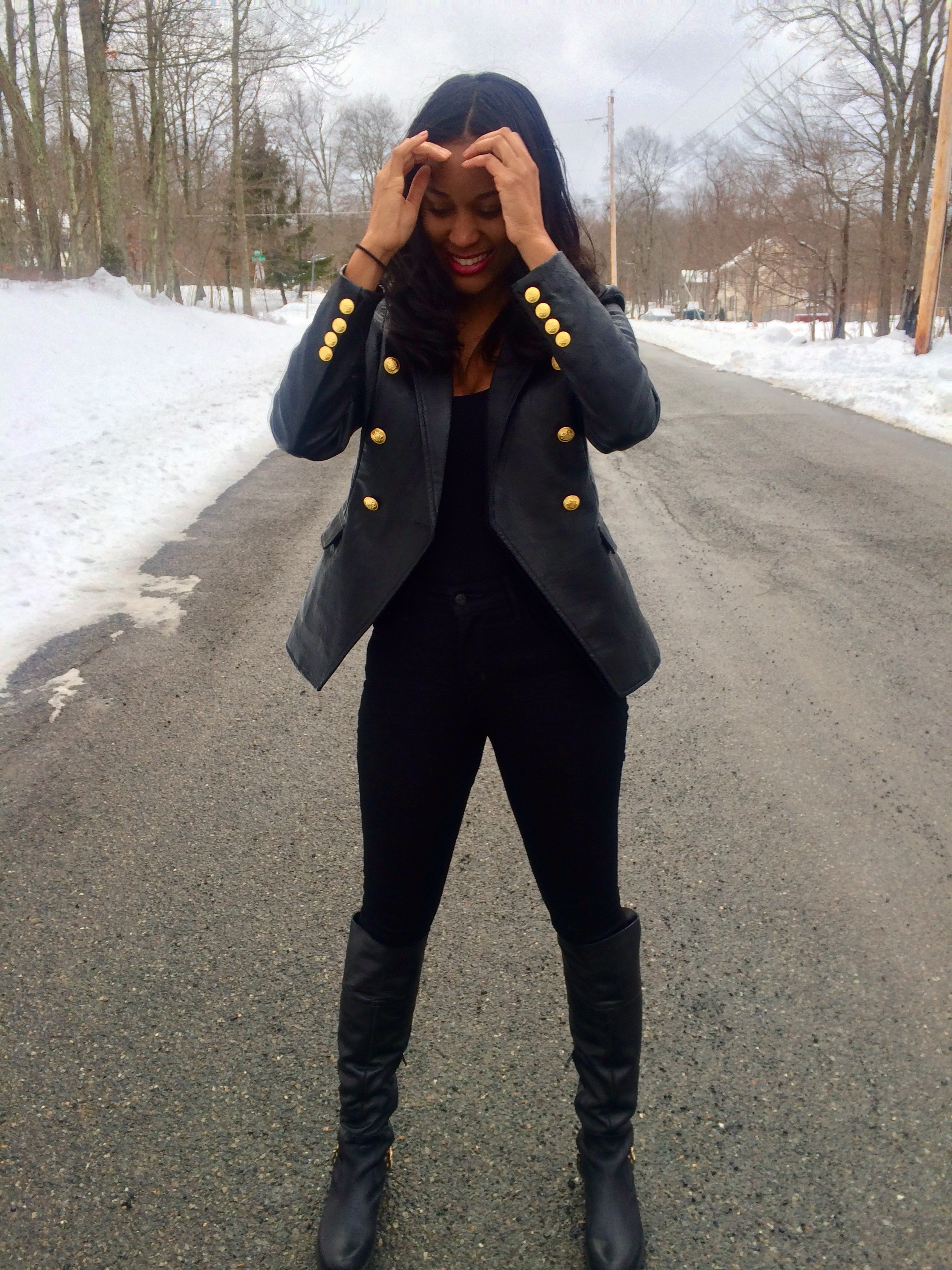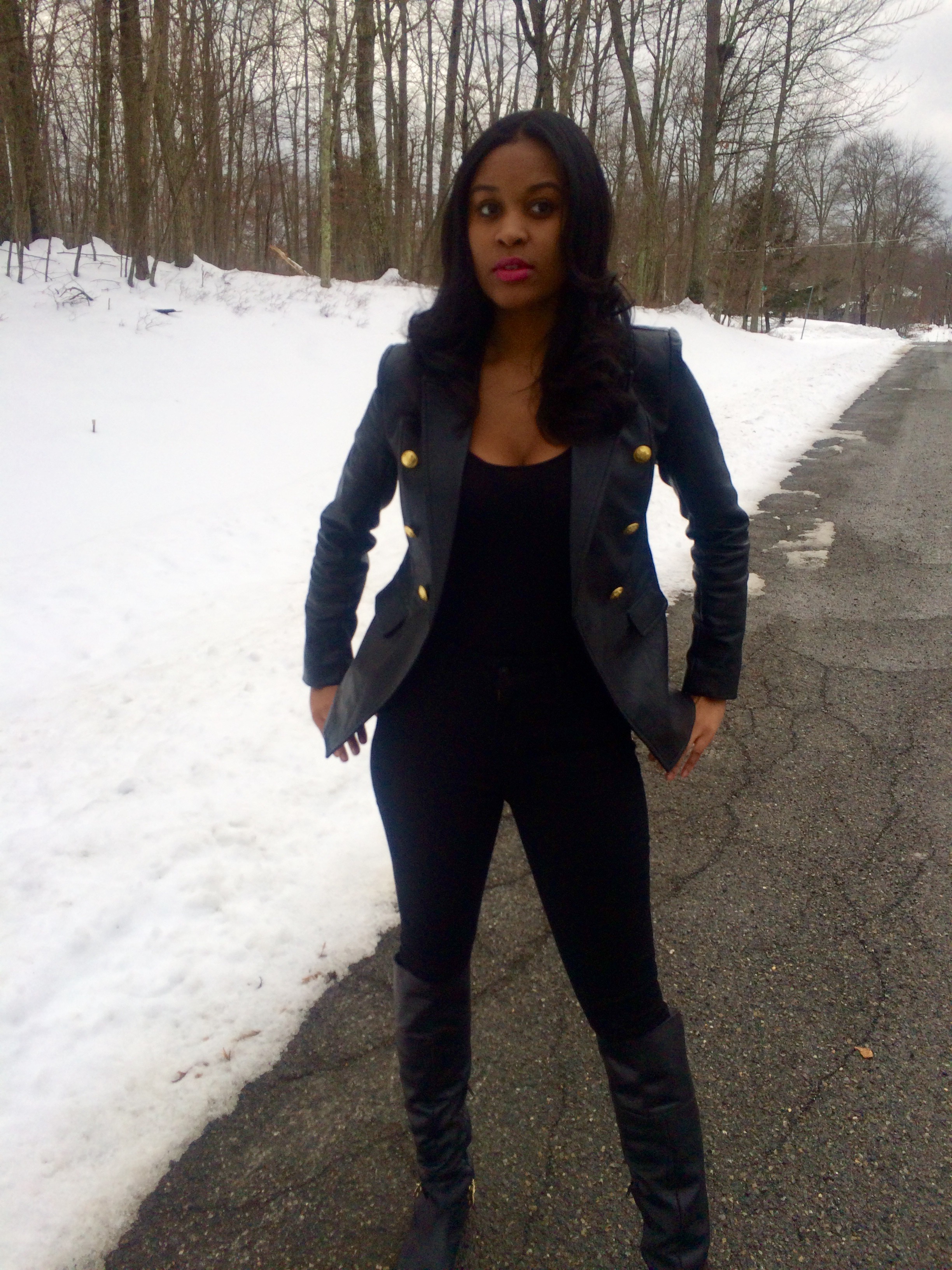 As promised, here is my first outfit of the day post of the New Year. I did this post in Poconos, PA while visiting my family over the weekend. It snowed overnight there so I thought it would be nice to have the snow as a backdrop to really make my all black everything look pop.